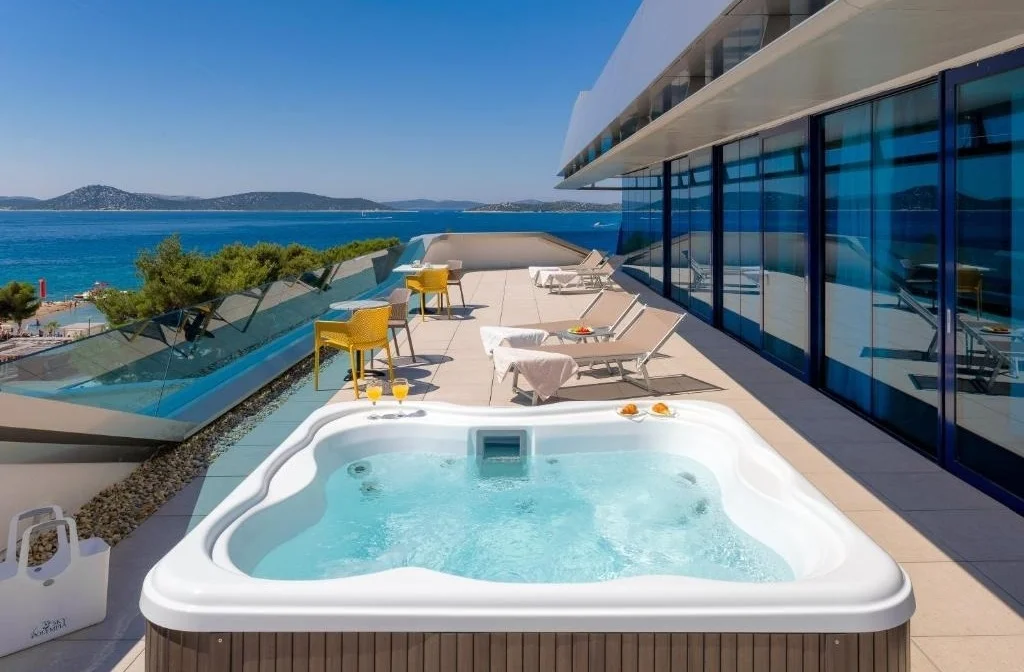 Modernes Hotel mit Rooftop-Pool, wenige Schritte vom Strand entfernt und in Gehnähe zur lebendigen Ortschaft Vodice.
