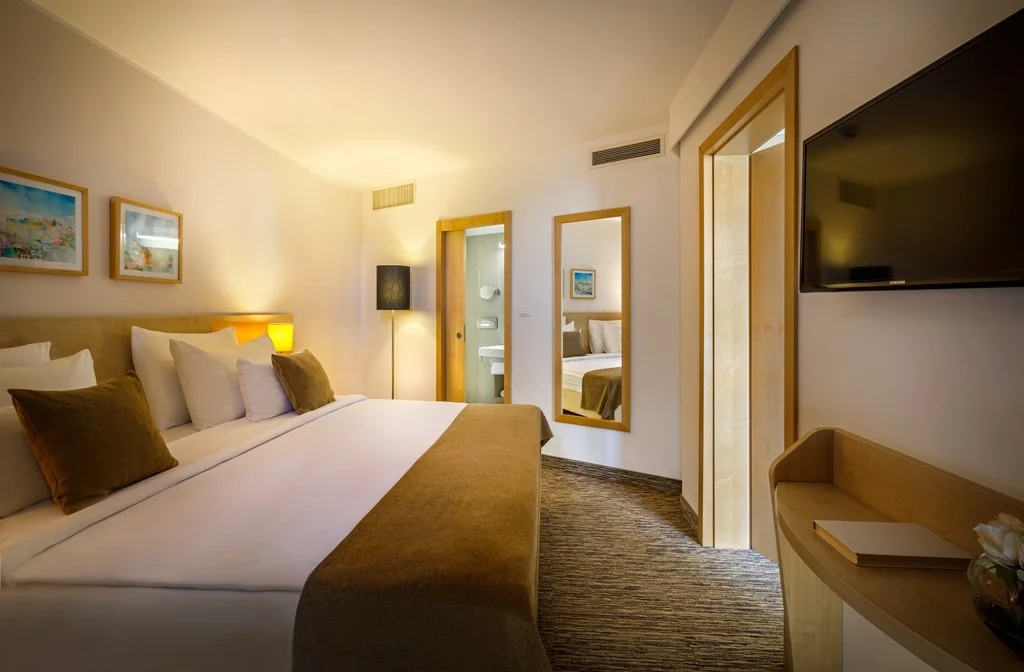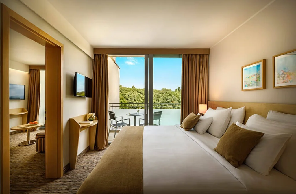 Familienfreundliches Strandhotel mit kinderfreundlicher Poolanlage und in Gehdistanz zum historischen Ortskern von Porec.