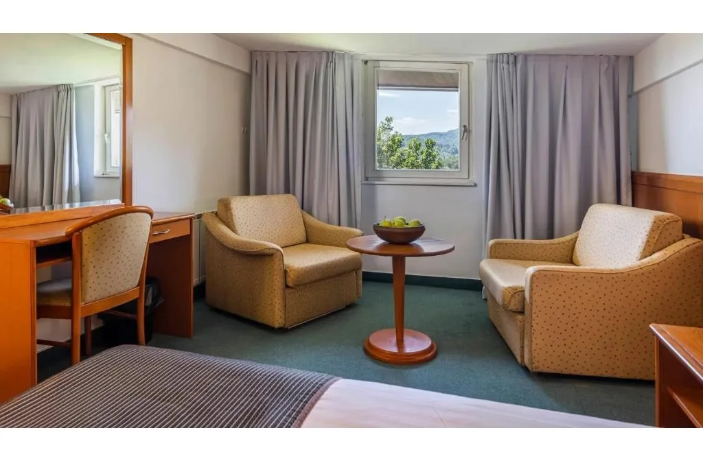 Das 3* Hotel Jezero liegt im Herzen des Nationalparks Plitvicer Seen und bietet einen erholsamen Rückzugsort inmitten unberührter Natur – eine wahre Oase der Ruhe für alle, die ein unvergleichliches Naturerlebnis suchen, eingebettet in die atemberaubende Landschaft Europas bekanntesten Parks und nur wenige Schritte von den glitzernden Seen entfernt.