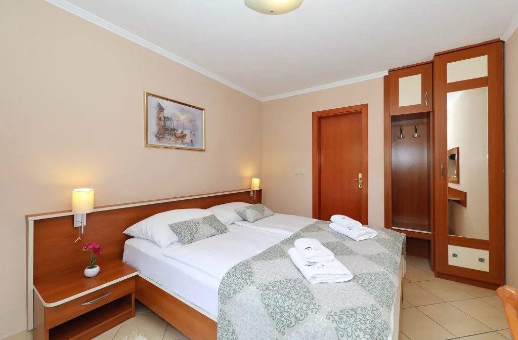 Kiesstrand Drazica ca. 150 m und Kiesstrand Soline ca. 400 m entfernt. Liegestühle uns Sonnenschirme gegen Gebühr.