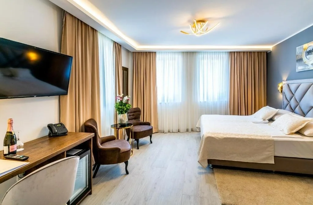 Das Heritage Hotel Stypia ist eine 4 Sterne Unterkunft welche Ihren Gästen wunderschön renovierte 4 Sterne Zimmer, eine grossflächige Terrasse, das à la Carte Restaurant Rosalia, Bar mit Hotellobby, Wäscheservice (kostenpflichtig), Gepäckaufbewahrung, Lift, einen multifunktionalen Konferenzsaal, kostenloses WiFi und Zimmerservice anbietet. Parkplätze (kostenpflichtig, Parkplätze können nicht im Voraus gebucht werden, je nach Verfügbarkeit)