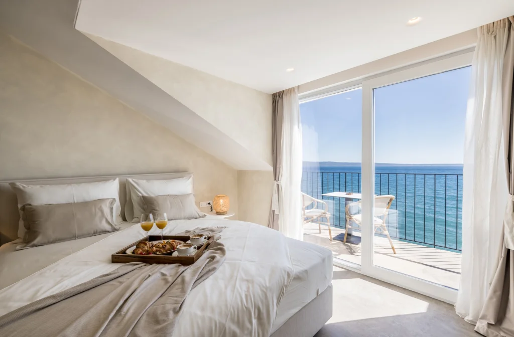 17 elegant und luxuriöse eingerichtete Zimmer und 8 Suiten, ein Grossteil davon mit einem majestätischen und beruhigenden Blick auf das Adriatische Meer.