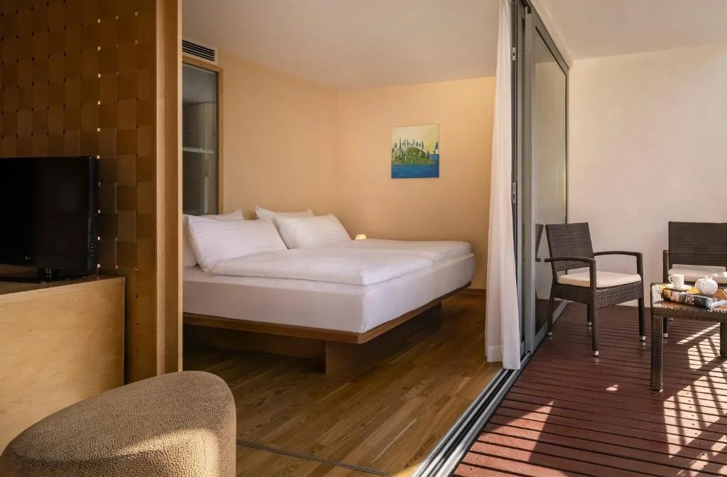 Alle Zimmer verfügen über ein Queensize-Bett, eine Badewanne und Dusche, WC, einen Haartrockner, ein Direktwahltelefon, Satellitenfernsehen mit integriertem Radio, Klimaanlage/Heizung, eine Minibar und einen Safe. Alle Zimmer verfügen über einen großen Balkon, WLAN kostenlos.