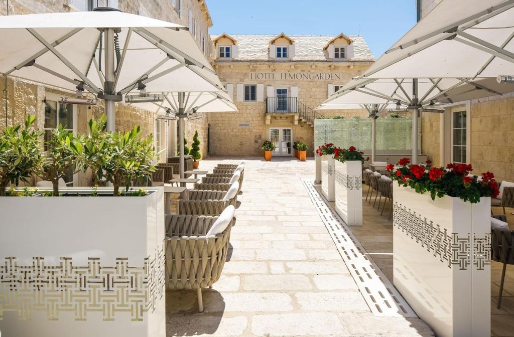 Das Hotel Lemongarden besteht aus 3 denkmalgeschützen Häusern, welche über 300 Jahre alt sind. Die Gebäude wurden allesamt restauriert; das Herrenhaus Ilić Dvor, das Definis Dvor und Vesna. Zu den Inhalten zählen: Frühstücksraum mit Lobby, BB Social Bar & Kitchen, Restaurant mit angeschlossener Bäckerei und Patisserie (Gelaterie Rosa mit Aussensitzplätzen), Lift. Ein herrlicher Garten mit Palmen, Rosen, Bougainvilleen, Hibisken und duftenden Zitronenbäumen umschliessen den grosszügigen Pool. Eigenes Olivenhaus am Olivenhain welches für private Events gemietet werden kann.