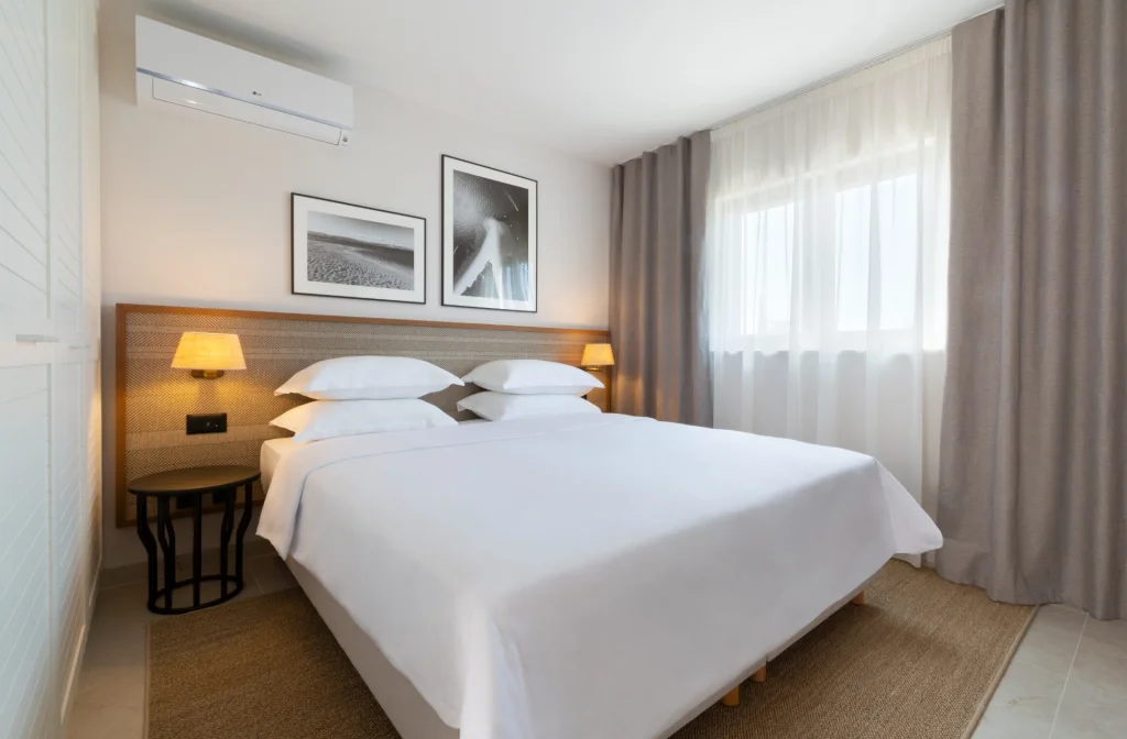 Das Bluesun Holiday Village Bonaca** liegt nur 150 m vom Strand und 10 Gehminuten vom berühmten Zlatni Rat entfernt. Die moderne Anlage bietet komfortable Zimmer mit Balkon, gratis WLAN, saisonalen Aussenpool, Fitness, Tennisplätze und einen kostenlosen Kinderclub. Vollpension Plus mit Getränken ist inklusive, das Buffetrestaurant sorgt für abwechslungsreiche Mahlzeiten. Familienfreundliche Atmosphäre, viele Aktivitäten und die Nähe zu den Stränden machen das Hotel zur perfekten Wahl für entspannte Badeferien auf der Insel Brac.