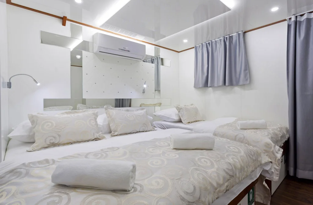 Kabineninhalte: Dusche/WC, Waschbecken, Klimaanlage, LCD-TV, Safe, Föhn