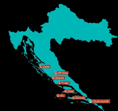 Zadar - Nationalpark Krka - Sibenik - Trogir - Hvar - Insel Hvar - Insel Bisevo - Vis - Insel Vis - Korcula - Insel Korcula - Dubrovnik