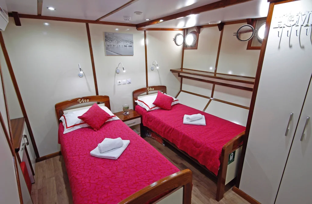 Schiff Vita Dreibettkabine Unterdeck Bett Bild Tisch