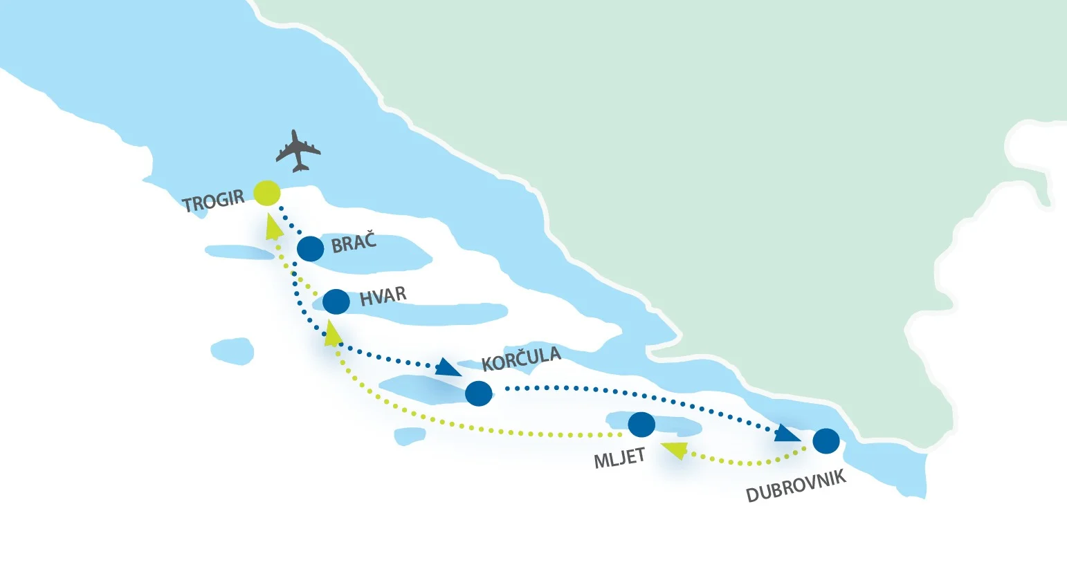 Trogir - Milna - Insel Brac - Korcula - Insel Korcula - Dubrovnik - Nationalpark Mljet - Hvar - Insel Hvar - Trogir
