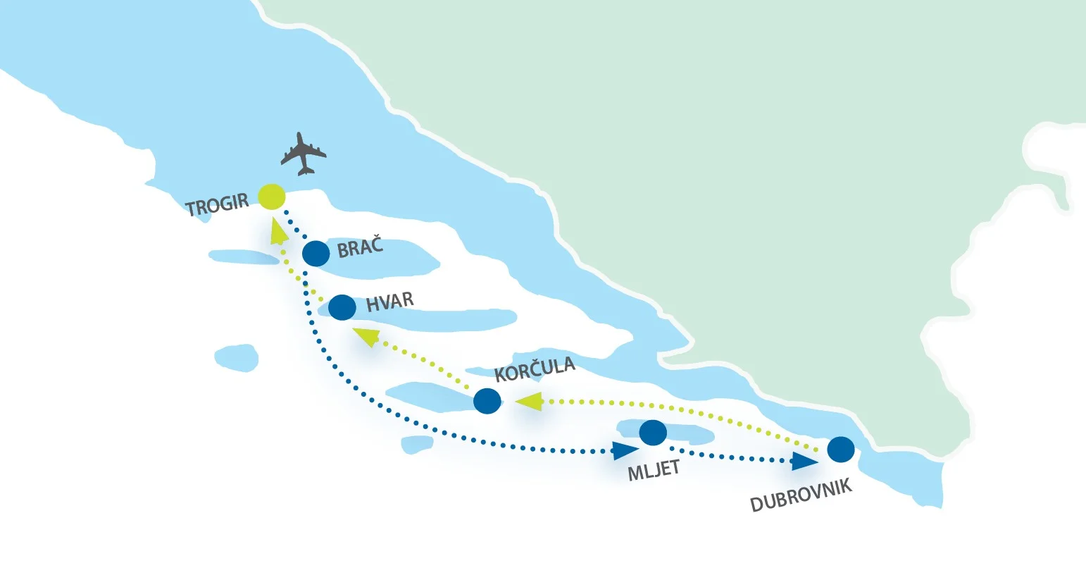 Trogir - Pucisca - Insel Brac - Nationalpark Mljet - Dubrovnik - Korcula - Insel Korcula - Hvar - Insel Hvar - Trogir