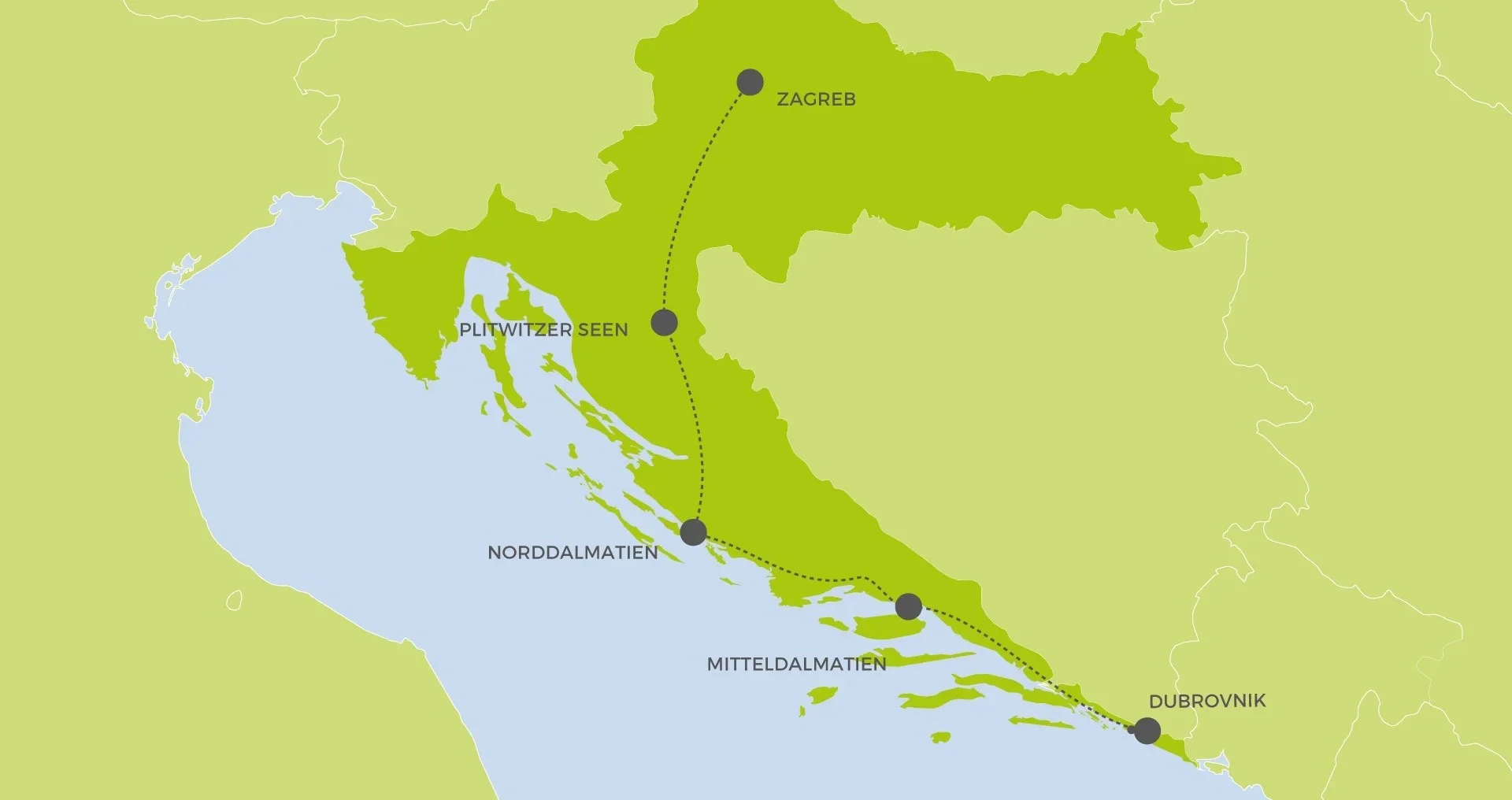 Zagreb - Nationalpark Plitvicer Seen - Zadar - Sibenik - Nationalpark Krka Wasserfälle - Trogir - Split - Insel Brac - Ston - Dubrovnik