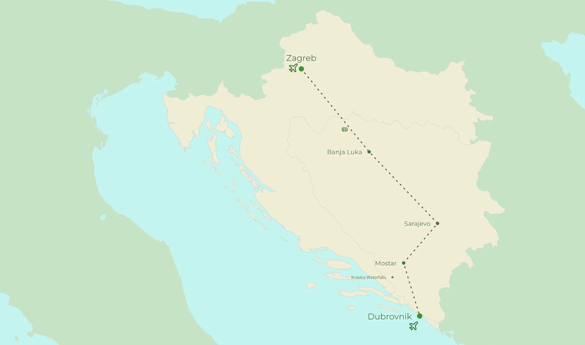 Zagreb - Banja Luka - Sarajevo - Mostar - Dubrovnik